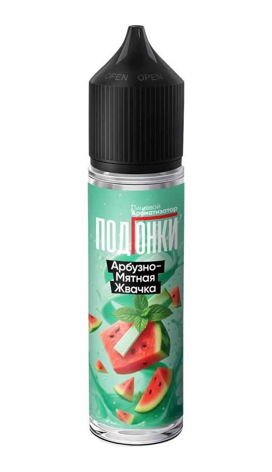 PODONKI ПОДГОНКИ Арбузно-мятная жвачка - ароматизатор для вейпа в объёме 13 мл. Для получения готовой для использования жидкости нужно добавить только глицерин (VG).