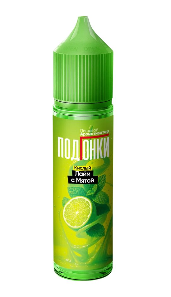 PODONKI ПОДГОНКИ Кислый лайм с мятой - ароматизатор для вейпа в объёме 13 мл. Для получения готовой для использования жидкости нужно добавить только глицерин (VG).