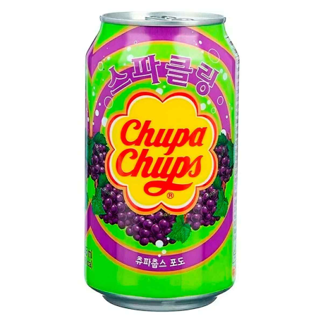 Chupa Chups Grape - безалкогольный газированный напиток объёмом 345 мл. Освежающий, утоляющий жажду и имеющий в составе натуральные соки напиток имитирует вкус одноимённого леденца. Одна упаковка содержит 24 баночки.
