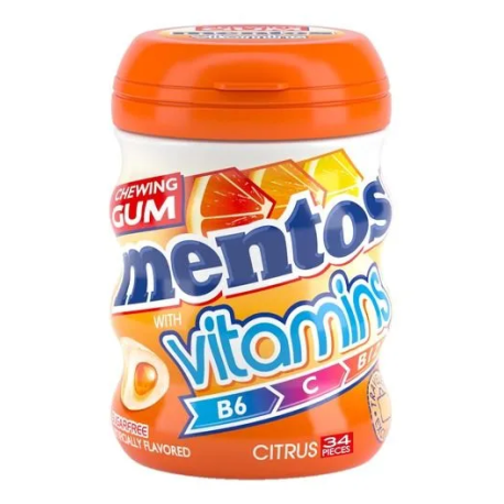 Mentos Vitamin Citrus - жевательная резинка весом 50 гр. Создаёт взрыв насыщенного вкуса и мгновенно освежает дыхание. Произведена в Польше. В одной упаковке 6 шт.