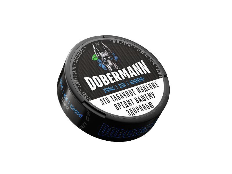 DOBERMANN SLIM Blueberry - жевательный табак весом 9 гр. Шайба содержит 20 паучей высококачественного табака высокой крепости.