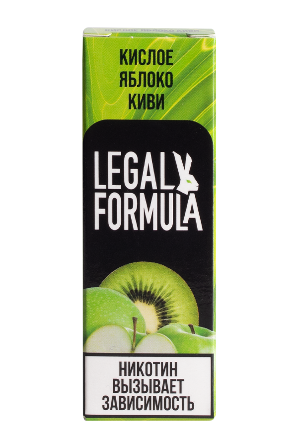 Жидкость LEGAL FORMULA - Кислое яблоко и киви HARD поставляется в объёме 10 мл. В своём составе содержит 50% PG и 50% VG.