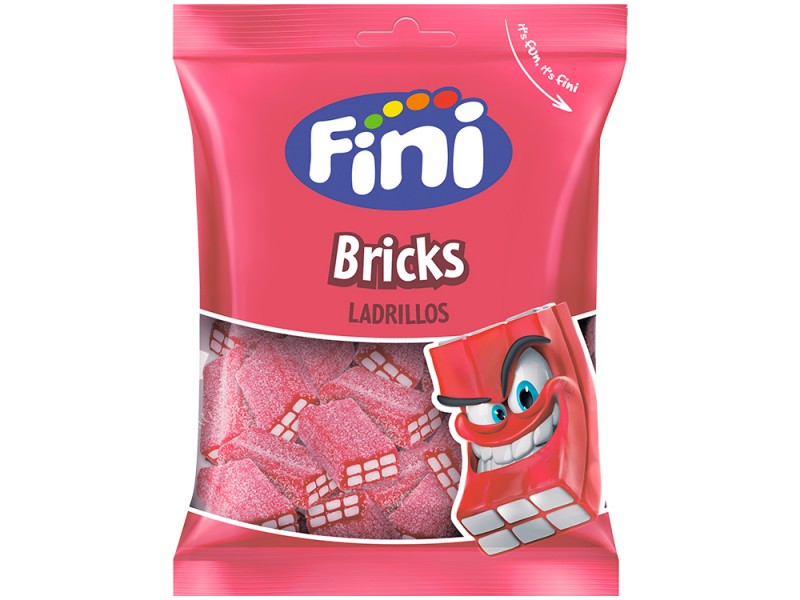 Fini Briсks Ladrillos - жевательный мармелад с ярким вкусом весом 90 гр. В своём составе имеет ингредиенты, соответствующие европейским стандартам качества. Произведён в Испании. В одной упаковке 12 шт.