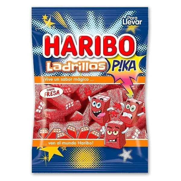 Haribo Ladrillos - жевательный мармелад весом 100 гр. В своём составе имеет натуральные соки. В одной упаковке 18 шт.