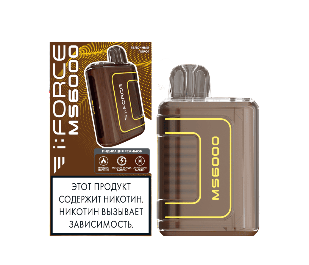Описание одноразовых электронных сигарет i:FORCE MS6000 - Яблочный Пирог