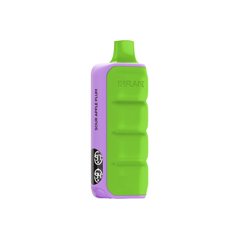 INFLAVE FLEX Кислое яблоко Слива - одноразка с ярким дизайном, которая рассчитана на 12000 тяг. Корпус девайса имеет мягкое и тактильно приятное силиконовое покрытие. В soft-touch участки добавлен люминофор, который способен накапливать свет и излучать его в темноте. На боковой грани расположен дисплей, отображающий актуальный уровень заряда и оставшейся жидкости. АКБ имеет ёмкость 650 mAh и возможность быстрой зарядки через USB Type-C.