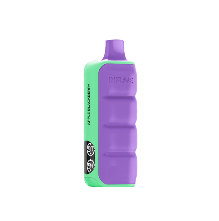 INFLAVE FLEX Яблоко Ежевика - одноразка с ярким дизайном, которая рассчитана на 12000 тяг. Корпус девайса имеет мягкое и тактильно приятное силиконовое покрытие. В soft-touch участки добавлен люминофор, который способен накапливать свет и излучать его в темноте. На боковой грани расположен дисплей, отображающий актуальный уровень заряда и оставшейся жидкости. АКБ имеет ёмкость 650 mAh и возможность быстрой зарядки через USB Type-C.
