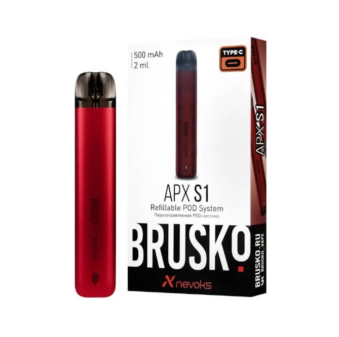 Brusko APX S1 Красный - это компактная POD-система многоразового использования со сменными картриджами. Корпус девайса изготовлен из прочного, но при этом лёгкого алюминиевого сплава. Объём картриджа составляет 2 мл. Аккумулятор ёмкость 500 mAh имеет возможность быстрой зарядки через USB Type-C.