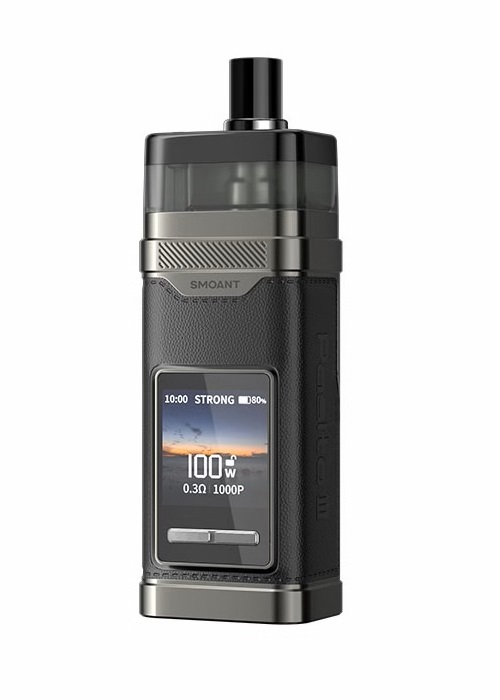 Smoant Pasito 3 Matte Black - мощная POD-система, которая способна выдавать 100 Вт. Материалами корпуса служат цинковый сплав, пластик и тактильно приятная накладка из экокожи. Девайс работает в четырёх режимах: Strong, Norm, Soft и DVW. Устройство оснащено TFT-экраном на 1.3 дюйма, который отображает время работы, уровень заряда, мощность, сопротивление и режим работы. В целом же предусмотрена 3 темы оформления и 24 варианта обоев экрана на любой вкус. В бак ПОДа возможно заправить 7 мл жидкости. Ёмкий аккумулятор на 2800 mAh заряжается всего за 30 минут через USB Type-C.